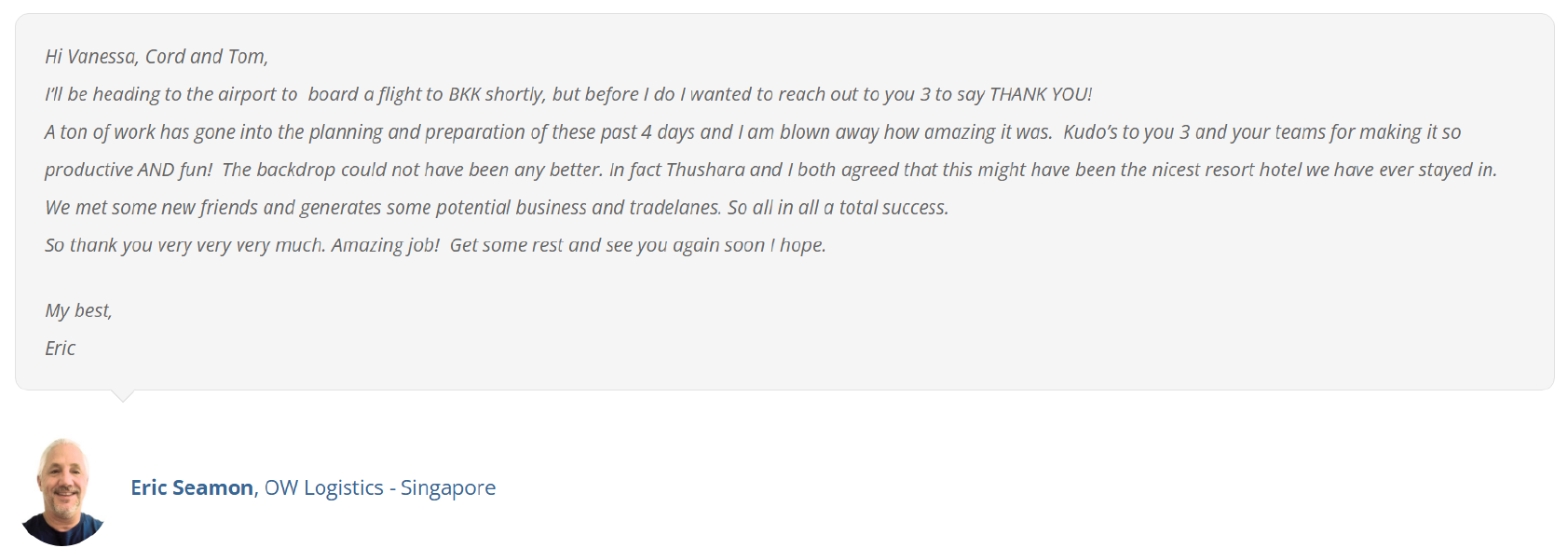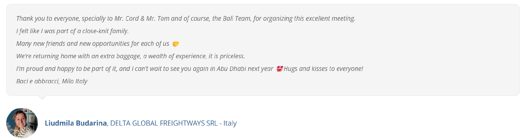 In all of our summits, we have routing orders and shipments worth a lot signed between new and existing members, year after year.